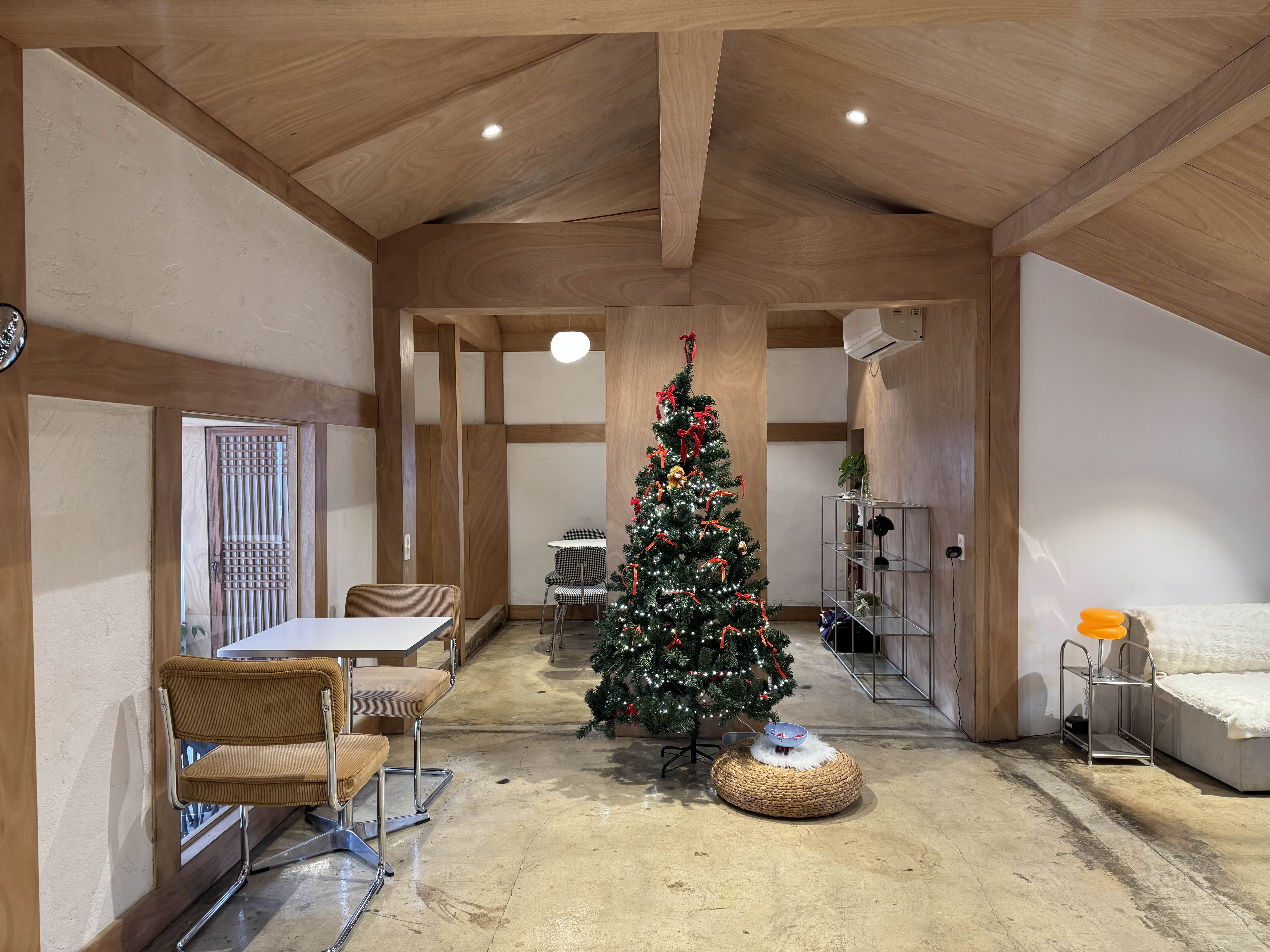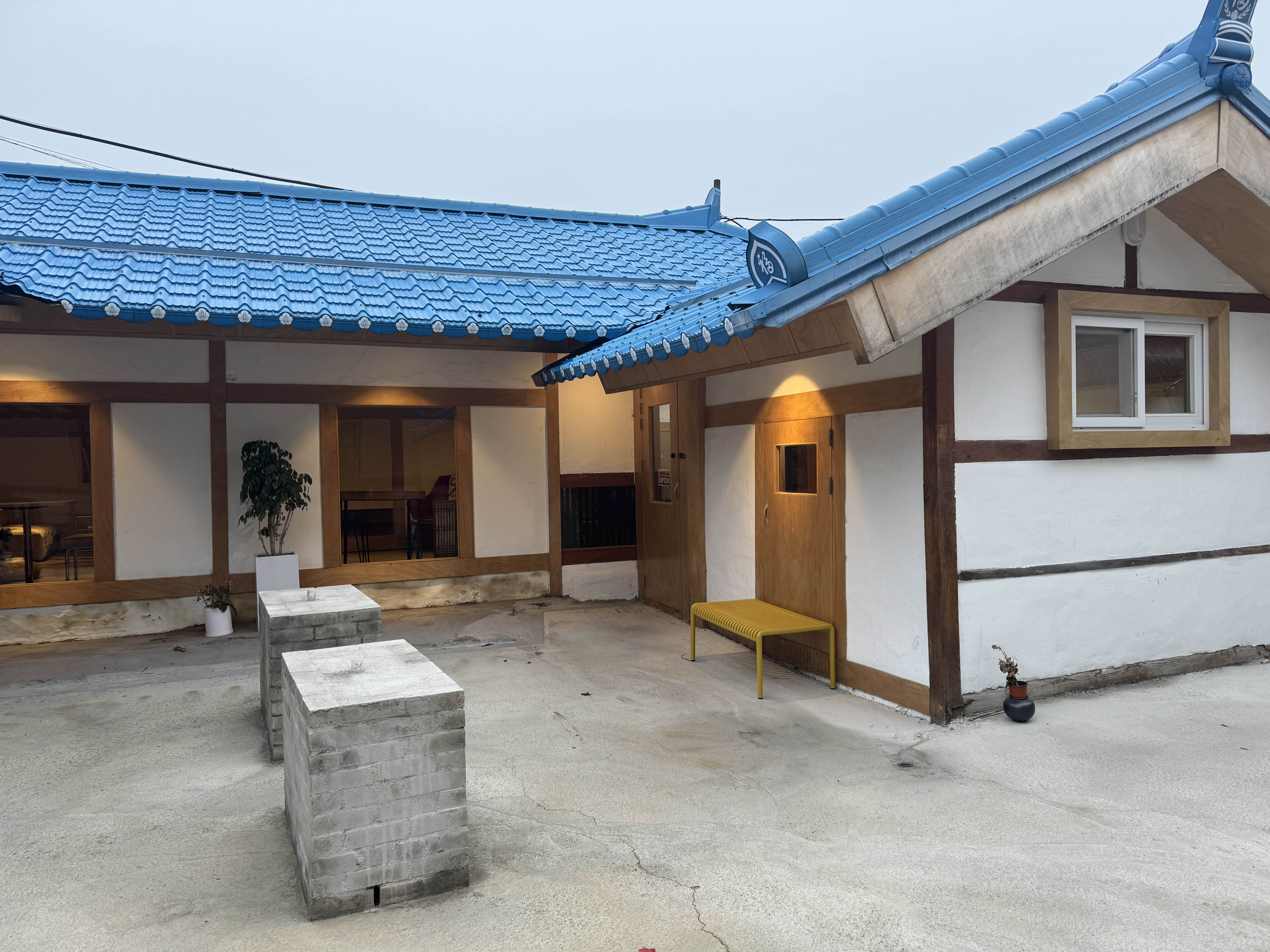 파란색 지붕에 하얀 벽, 그리고 원목색 인테리어가 한옥의 따뜻함을 떠올리게 하는 곳이더라고요.