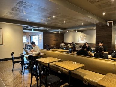 가을 시즌 한정 메뉴인 블랙 글레이즈드 라떼말차 글레이즈드 티 라떼로 따뜻한 커피 타임을 즐기며 여행의 피로를 풀었어요.