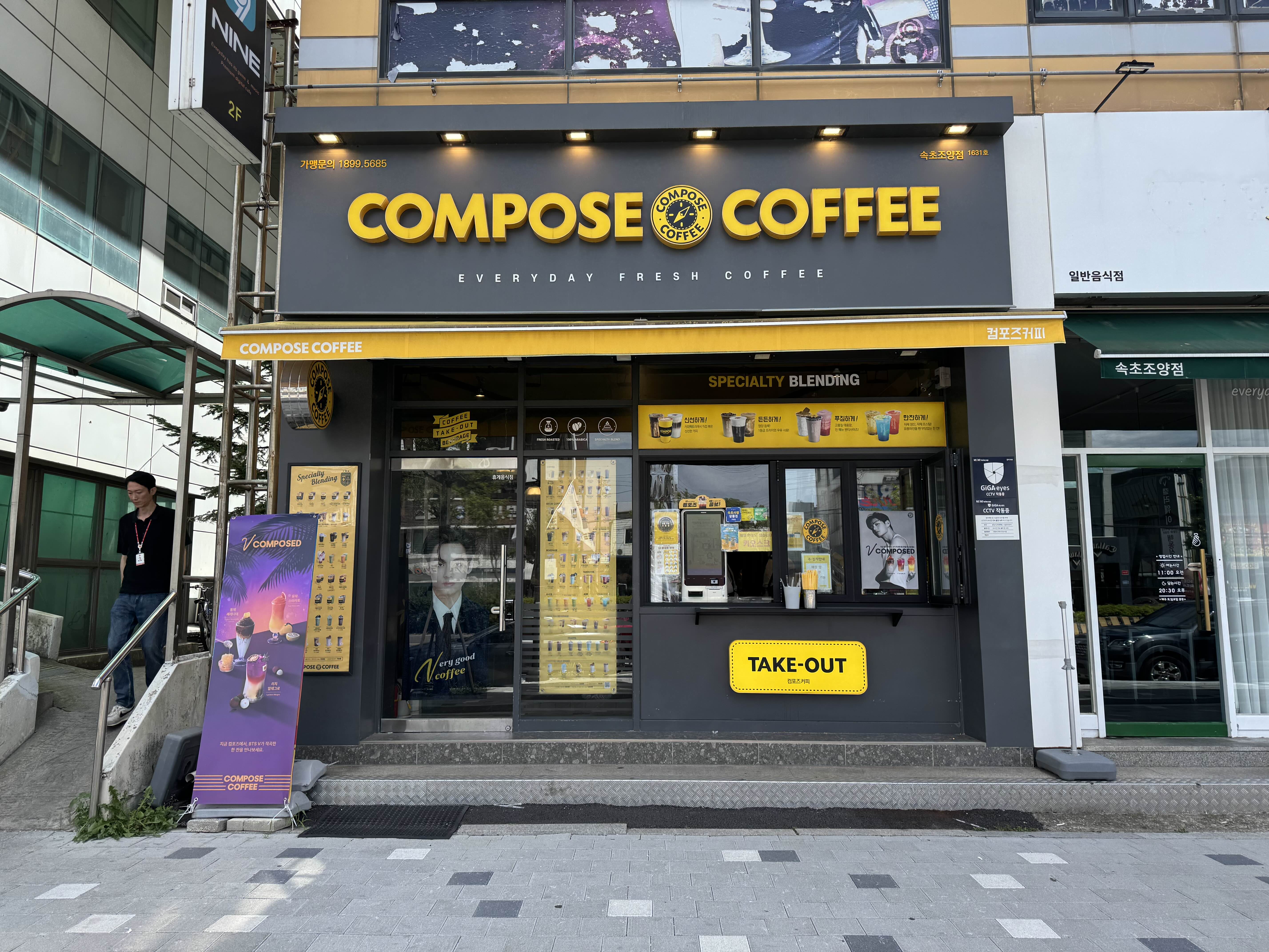 컴포즈 커피는 이미 저렴한 가격과 깔끔한 음료 맛으로 현지인들 사이에서 인기 많은 카페예요.