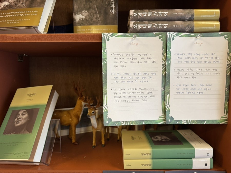 무엇보다 인상 깊었던 건 사장님이 직접 쓰신 책 소개 메모들이 곳곳에 붙어 있었다는 거예요.