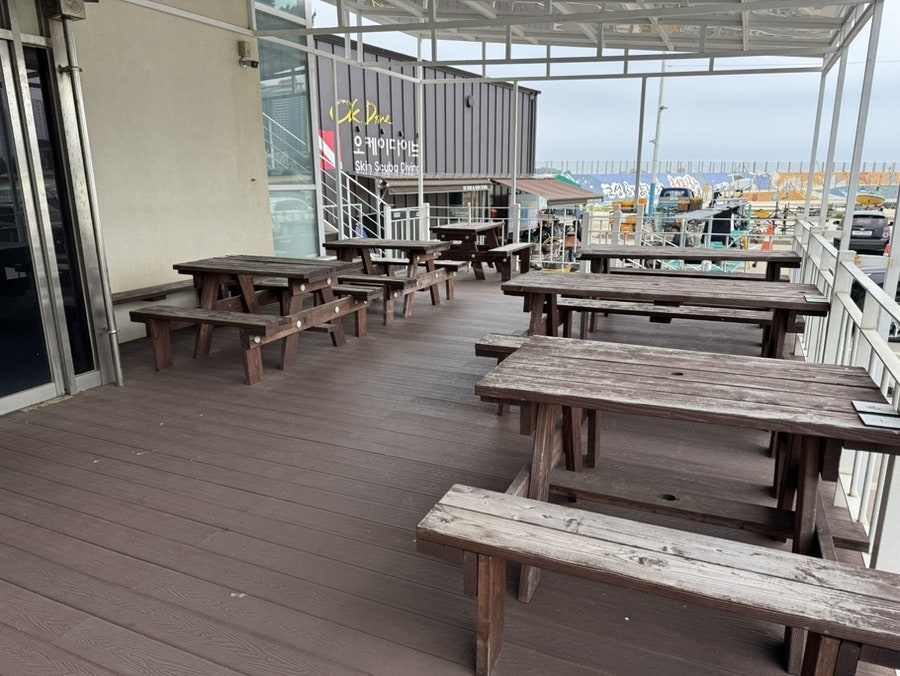 바다뷰가 보이는 창가 자리에 앉았는데, 날씨가 조금 흐려 아쉬웠지만 그래도 바다를 바라보며 먹는 분위기는 언제나 최고였어요.