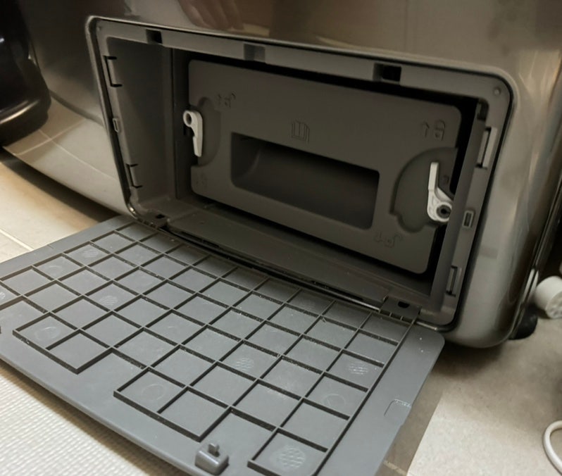 스펀지 필터에 먼지가 어마어마하게 끼어 있었어요. 털뭉치가 또르르 굴러다닐 정도였답니다. 특히 우리 집 반려견 구름이의 털이 ‘열일’했더라고요.