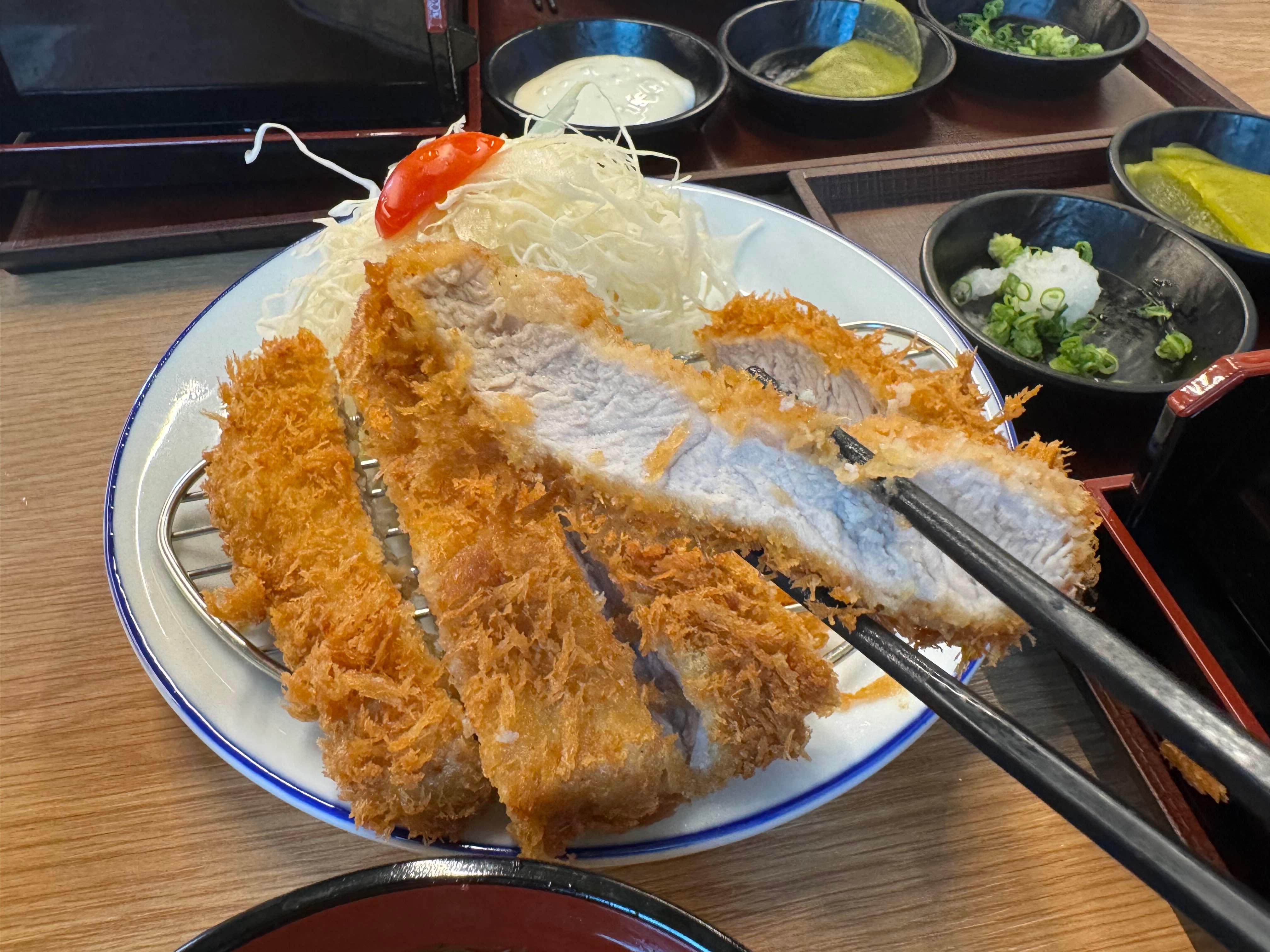 돈까스는 두께감이 있으면서도 고기가 완전 부드럽고, 튀김옷이 기름지지 않아 한 입 먹으면 “바삭!” 소리가 나요.