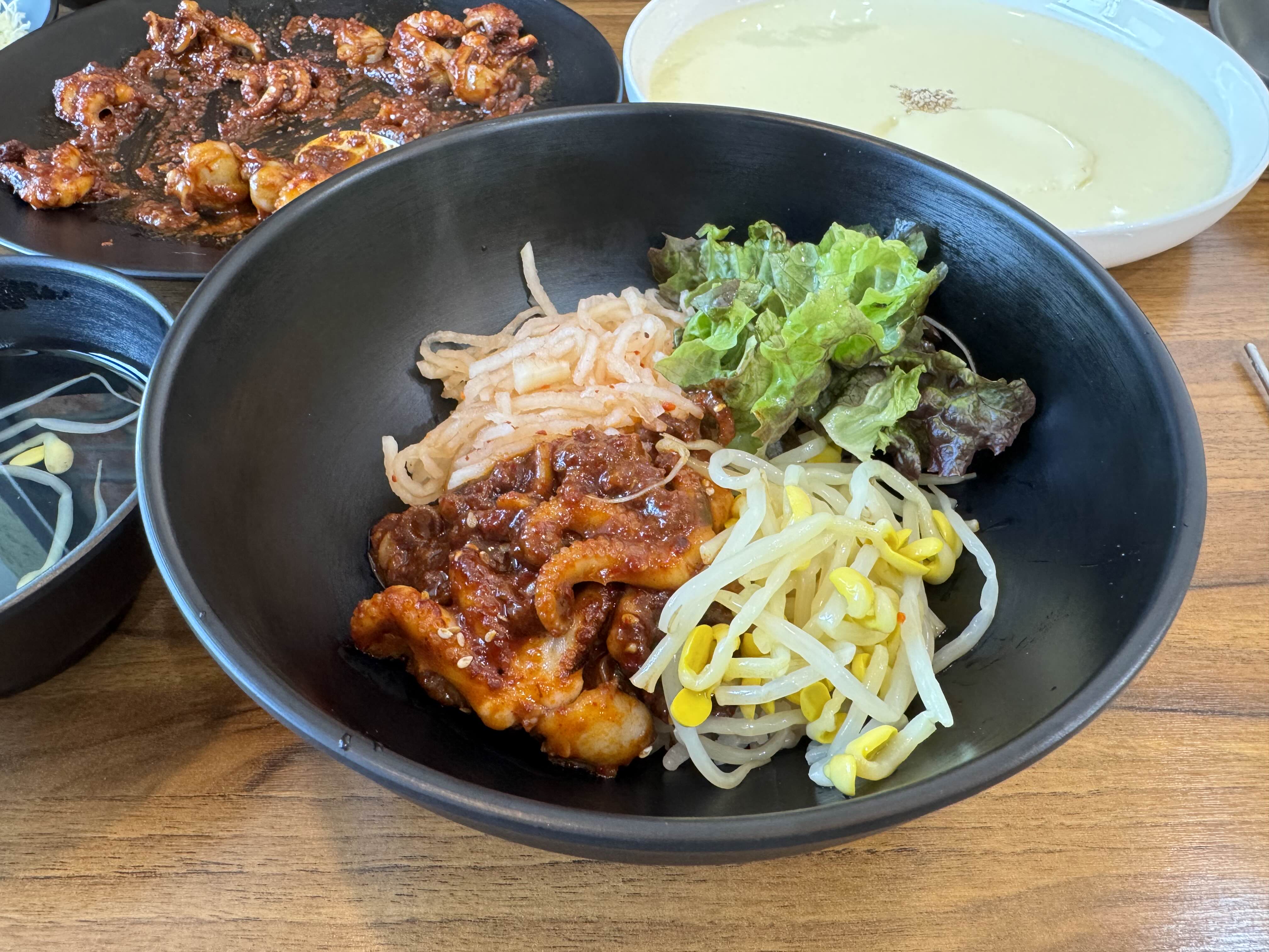쭈꾸미볶음을 비벼 먹으라고 이렇게 주시더라고요. 밥그릇부터 비빔모드 ON 되는 기분이에요.