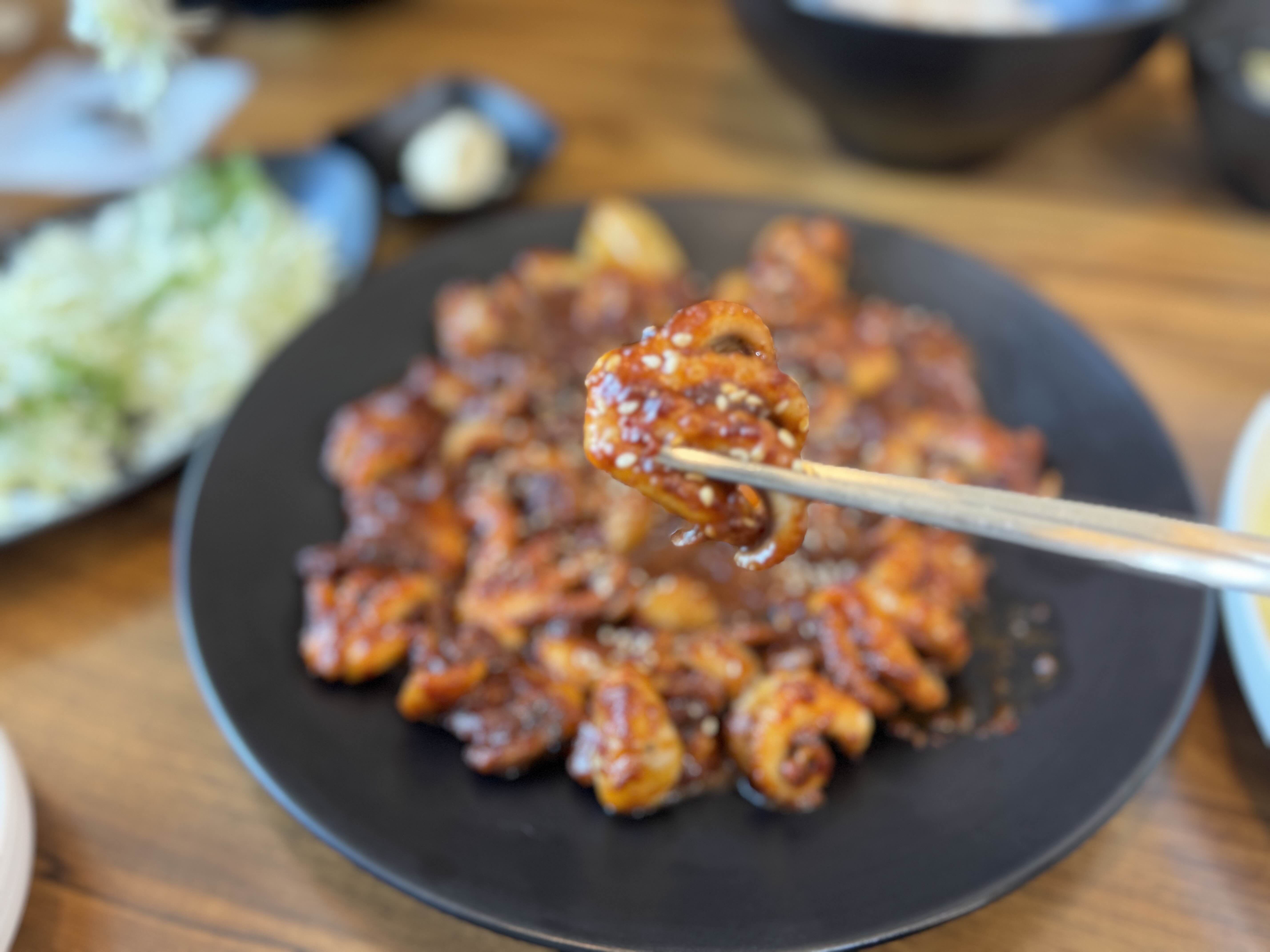 통통하고 쫄깃한 쭈꾸미에 고추장 양념의 불맛이 더해져 밥 비벼 먹기 딱 좋았어요.