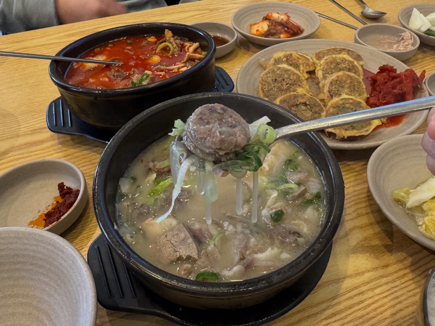 직접 고운 한우 사골육수에 순대, 다양한 돼지고기까지 들어가는데,