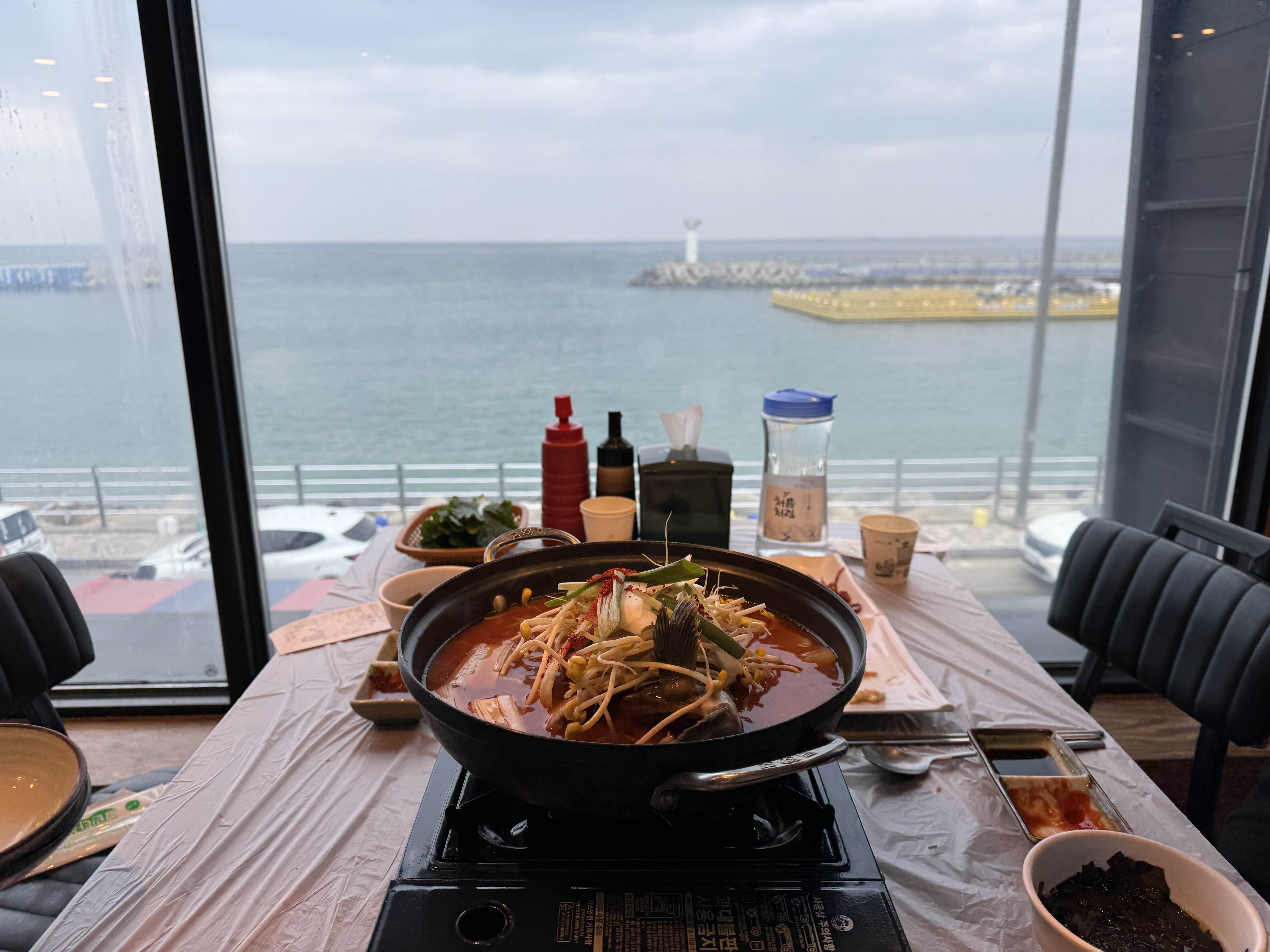 칼칼하면서 깊은 맛이 확 올라와서 바다뷰 보며 먹으니 속초 바다 향기가 더 진하게 느껴졌던 식사였어요.