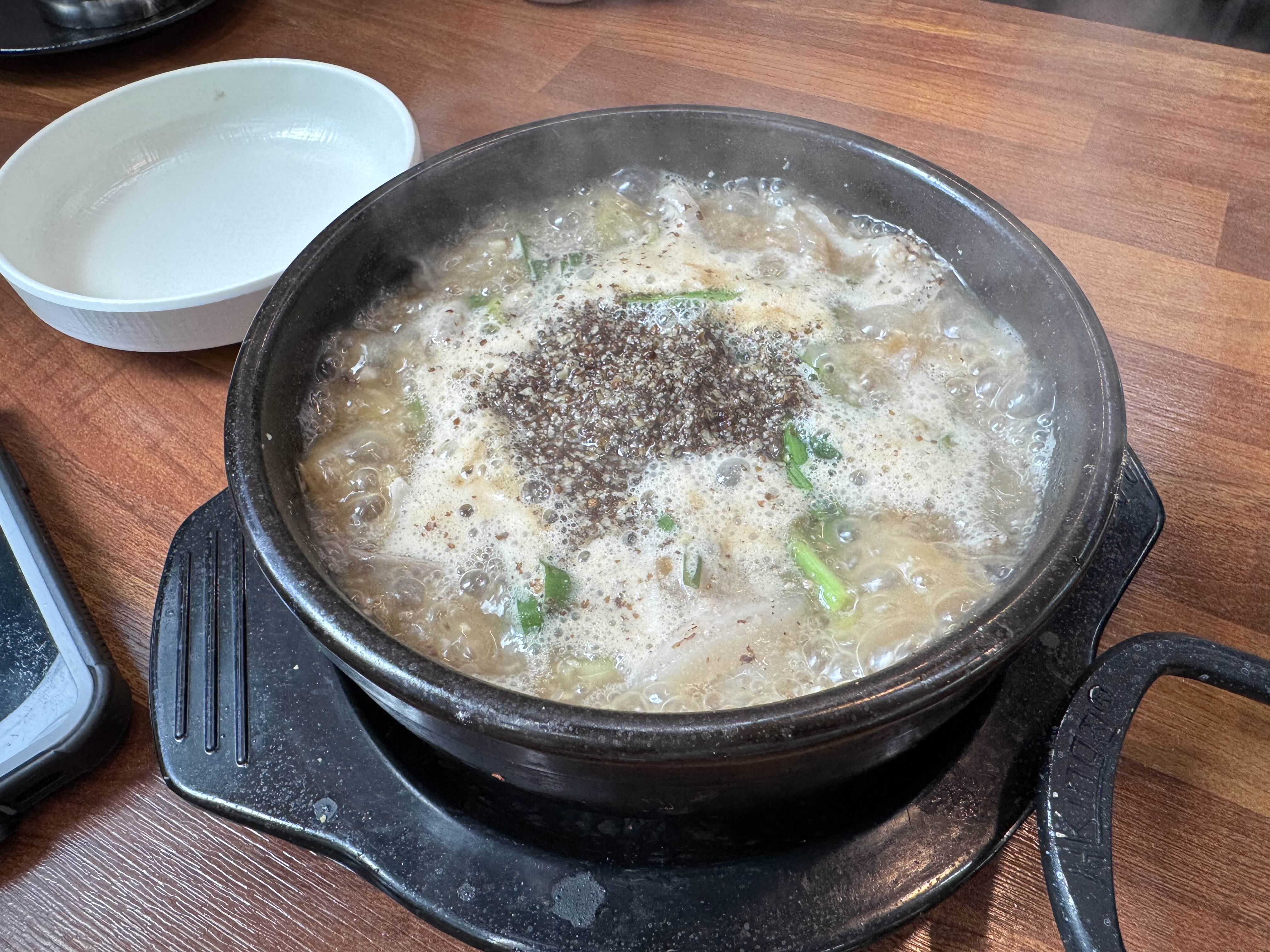 저희는 매운 걸 못 먹는 아이 때문에 **순대곰탕(고기만)**도 주문했어요.