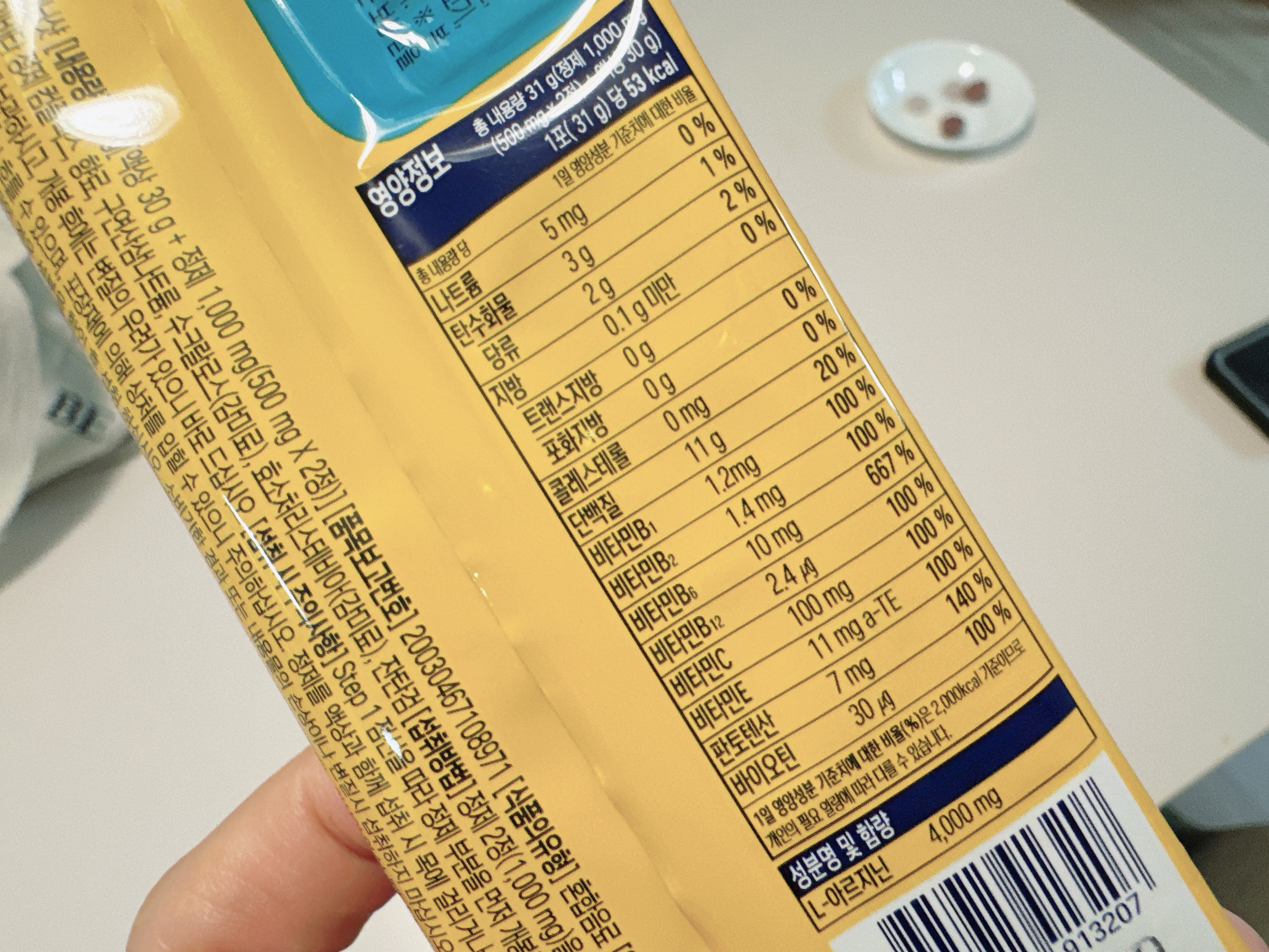 - 아르기닌 3,000mg → 혈액순환 촉진, 피로 회복, 활력 증진
