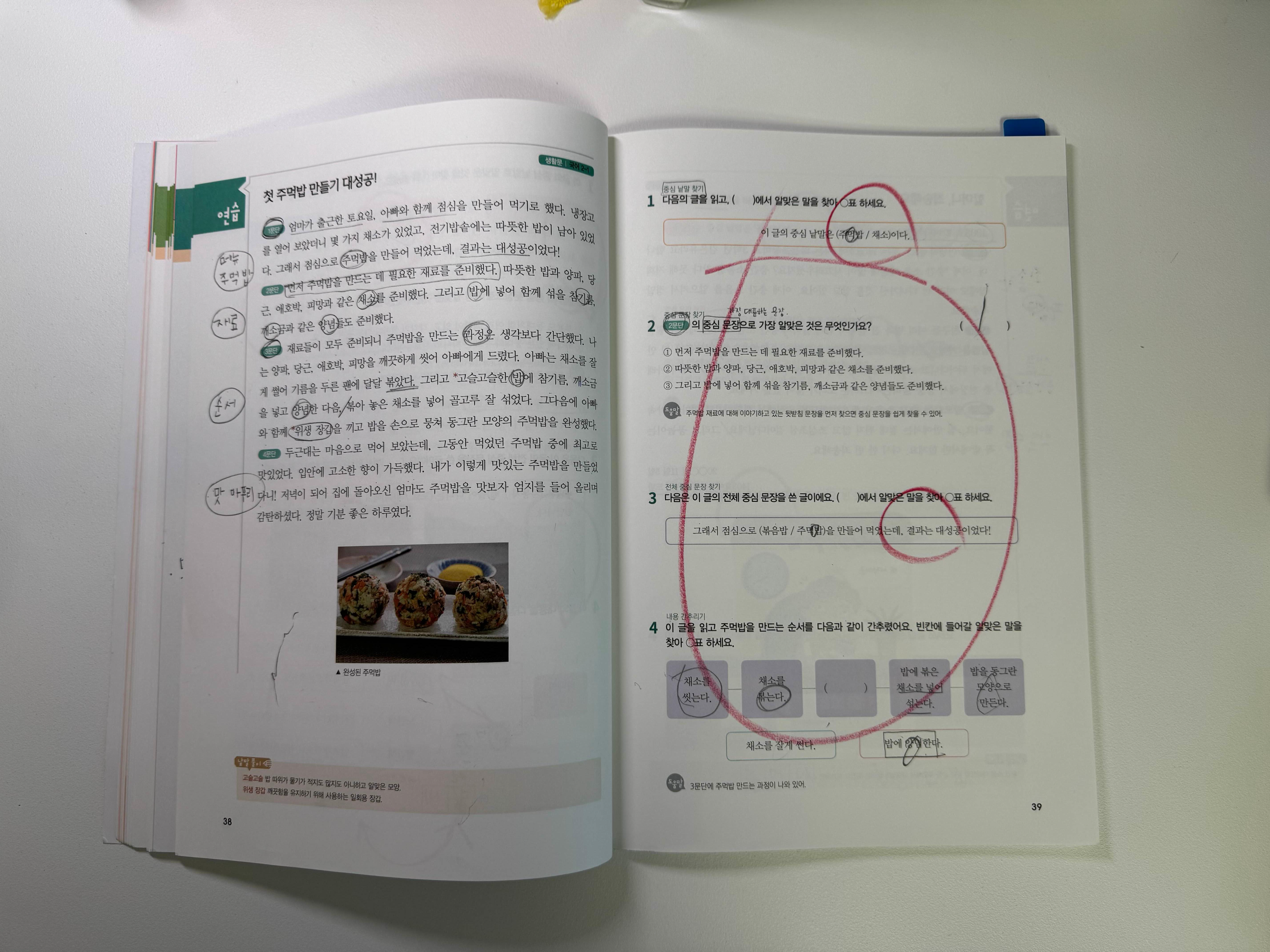 작은 부분이지만, 매일 쓰는 교재다 보니 채점 과정이 조금 번거롭다고 느껴졌어요.