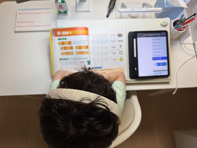 집에 오면 해맑음이는 자연스럽게 공부 루틴을 시작해요.